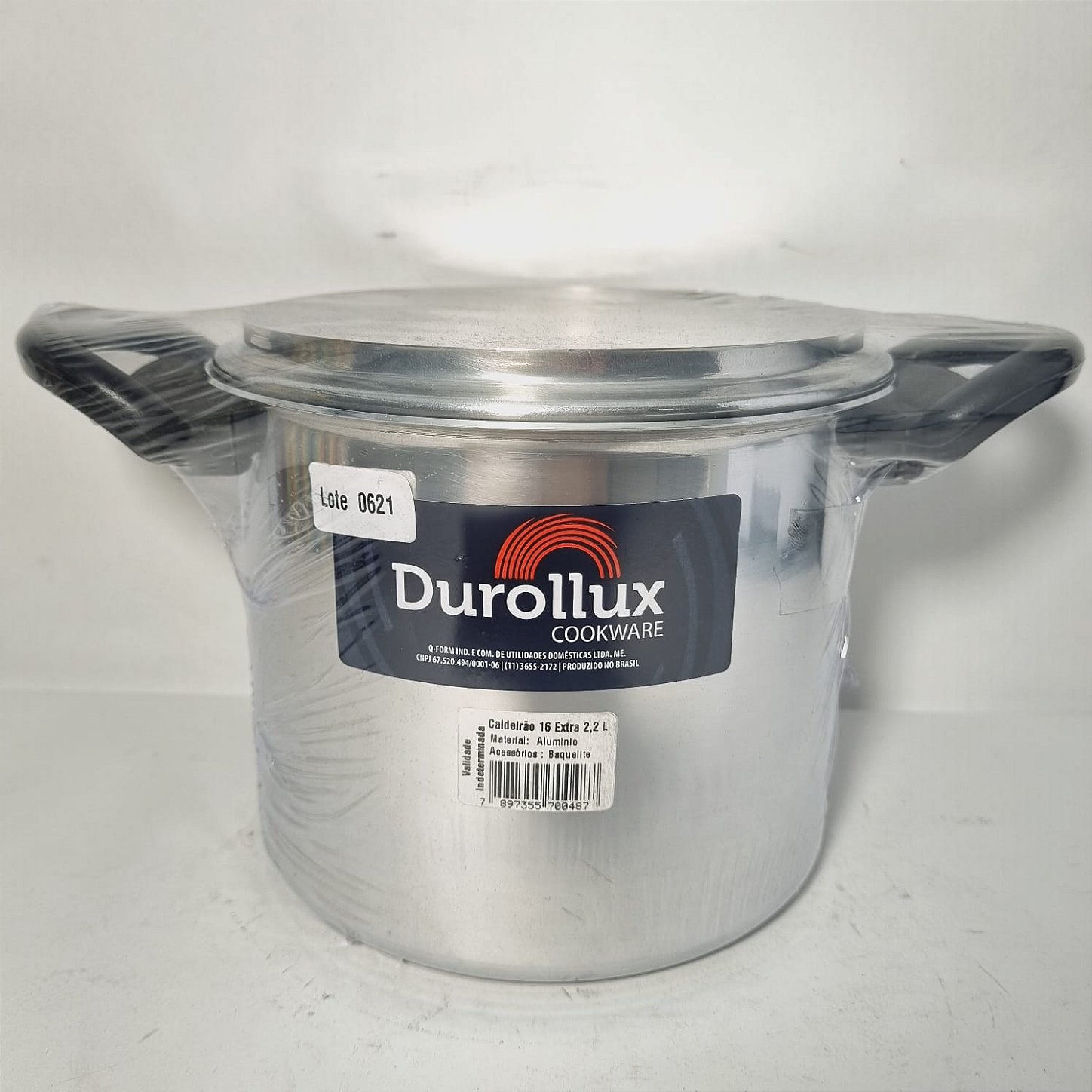 O Caldeirão 16 Extra DUROLLUX ALUMINIUM é a escolha ideal para quem busca praticidade e eficiência no preparo de suas receitas favoritas. Este caldeirão de alumínio da DUROLLUX ALUMINIUM, com capacidade de 2,2 litros e diâmetro de 16 cm, é um utensílio essencial para sua cozinha. Fabricado em alumínio de alta qualidade e com acabamento EXTRA, garante durabilidade e resistência, proporcionando um cozimento uniforme para diversos pratos. Seu design funcional inclui alças robustas para um manuseio seguro, tornando-o perfeito para o dia a dia e para o preparo de refeições em família.