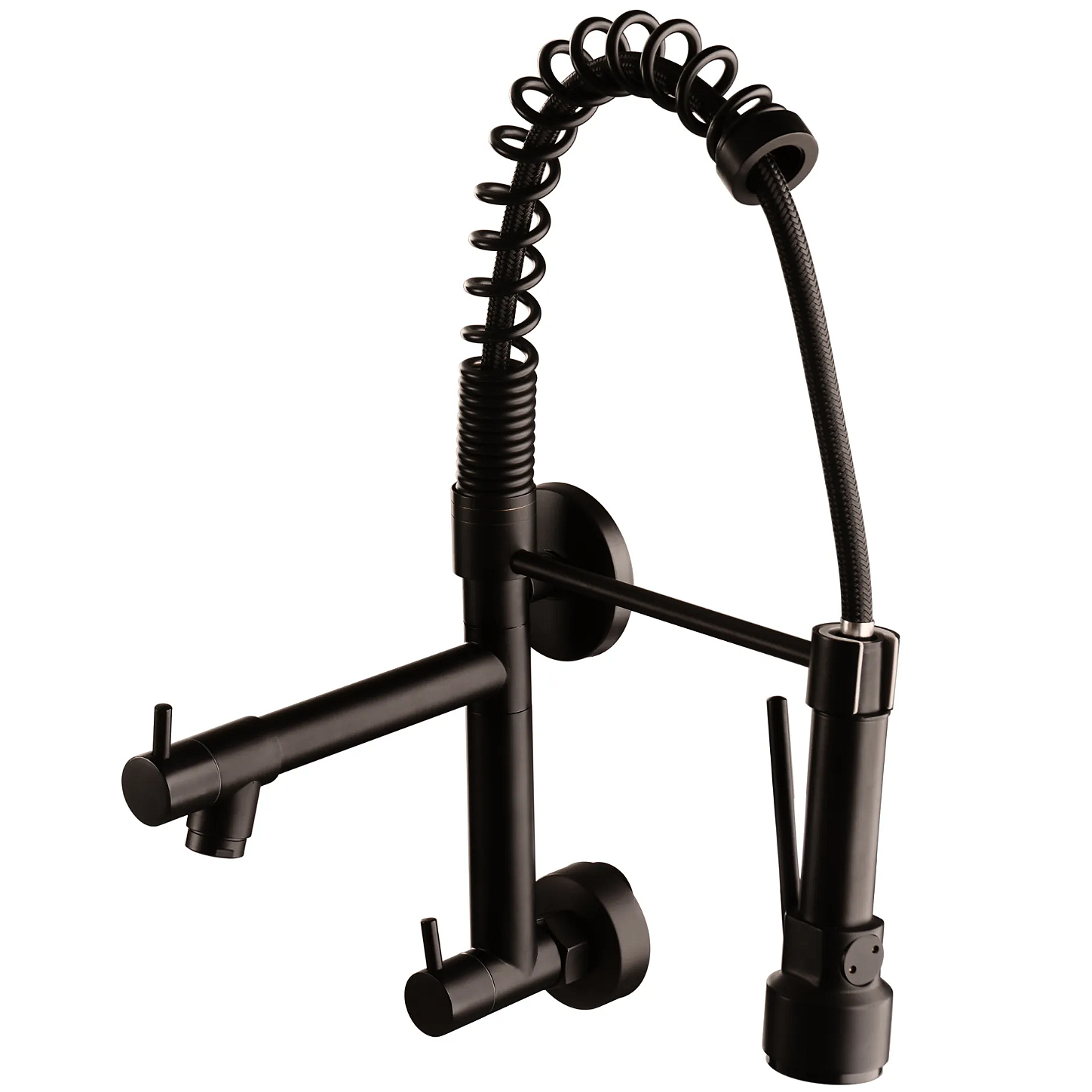 A Torneira Pia Parede 1278 Gourmet Black Dupla Carneiro oferece funcionalidade e estilo moderno para sua cozinha, com design de parede e acabamento preto fosco.