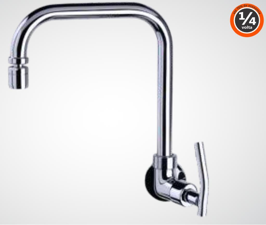 Esta torneira para pia foi projetada para instalação na parede, liberando espaço na bancada e facilitando a limpeza. A manopla tipo alavanca, de perfil liso e ligeiramente curvo, oferece uma ergonomia excelente e um manuseio suave. É uma solução versátil para quem busca otimizar o espaço e ter um produto de confiabilidade para o dia a dia, seja na cozinha ou na lavanderia.