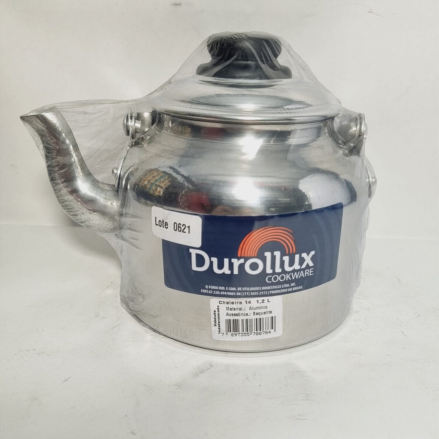 Prepare suas bebidas favoritas com praticidade e durabilidade usando a Chaleira de Alumínio Durollux de 1,2 Litros.