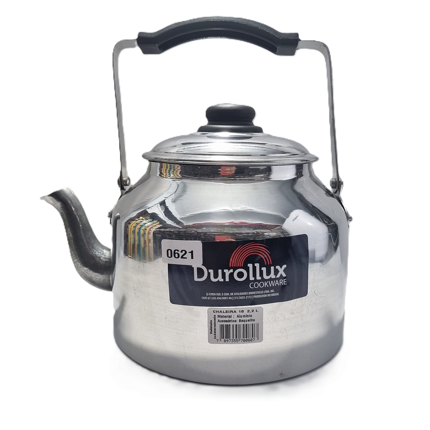 A Chaleira 18 2,2L COD80 DUROLLUX oferece praticidade e durabilidade, sendo ideal para aquecer água de forma rápida e eficiente na sua cozinha. A Chaleira 18 2,2L COD80 DUROLLUX 181889 é a escolha perfeita para quem busca um item essencial e confiável para a cozinha. Fabricada em alumínio de alta qualidade, esta chaleira clássica apresenta um design elegante com acabamento prateado brilhante, que se integra harmoniosamente a qualquer estilo de decoração. Com capacidade de 2,2 litros e diâmetro de 18cm, é ideal para o preparo de chás, cafés e outras bebidas quentes para toda a família ou para momentos de relaxamento. Sua construção robusta garante resistência e longa vida útil, enquanto a alça de balanço com empunhadura preta oferece segurança e conforto no manuseio. O bico curvo facilita o despejo preciso, evitando derramamentos e proporcionando uma experiência de uso superior.