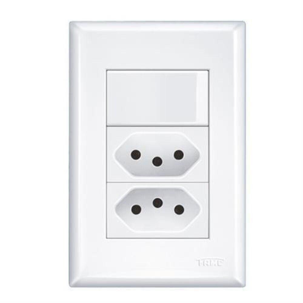 1 Interruptor Simples + 2 Tomadas 10A Branco Evidence Fame 3533