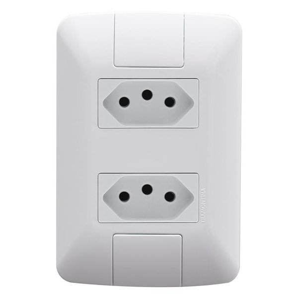 Com o Conjunto 4x2 com 2 Tomadas 2P+T Tramontina Aria 10A 250 V Branco você terá mais praticidade na hora de ligar mais de um equipamento elétrico ou eletrônico ao mesmo tempo. Produzido em termoplástico com acabamento brilho na cor branca, ele possui sistema modular com o suporte incorporado e furo oblongo que facilita a fixação e a regulagem da placa à parede, deixando-a reta; além disso, sua instalação não fica aparente, o que deixa seu cômodo ainda mais bonito. Um item ideal para sua casa, que acompanha suporte e parafusos para a instalação!