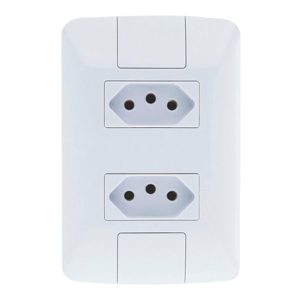 Com o Conjunto 4x2 com 2 Tomadas 2P+T Tramontina Aria 20 A 250 V Branco você terá mais praticidade na hora de ligar mais de um equipamento elétrico ou eletrônico ao mesmo tempo. Produzido em termoplástico com acabamento brilho na cor branca, ele possui sistema modular com o suporte incorporado e furo oblongo que facilita a fixação e a regulagem da placa à parede, deixando-a reta; além disso, sua instalação não fica aparente, o que deixa seu cômodo ainda mais bonito. Um item ideal para sua casa, que acompanha suporte e parafusos para a instalação!