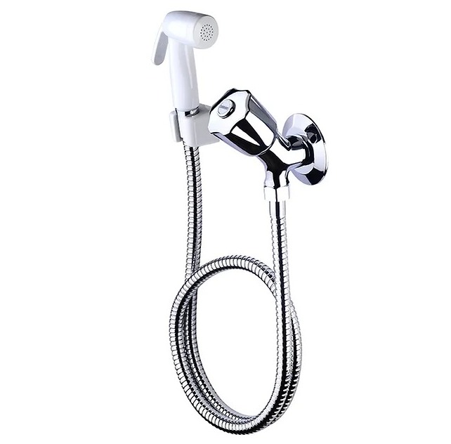 O pulverizador manual com pequenos orifícios garante uma distribuição de água suave e eficaz para a higiene íntima.