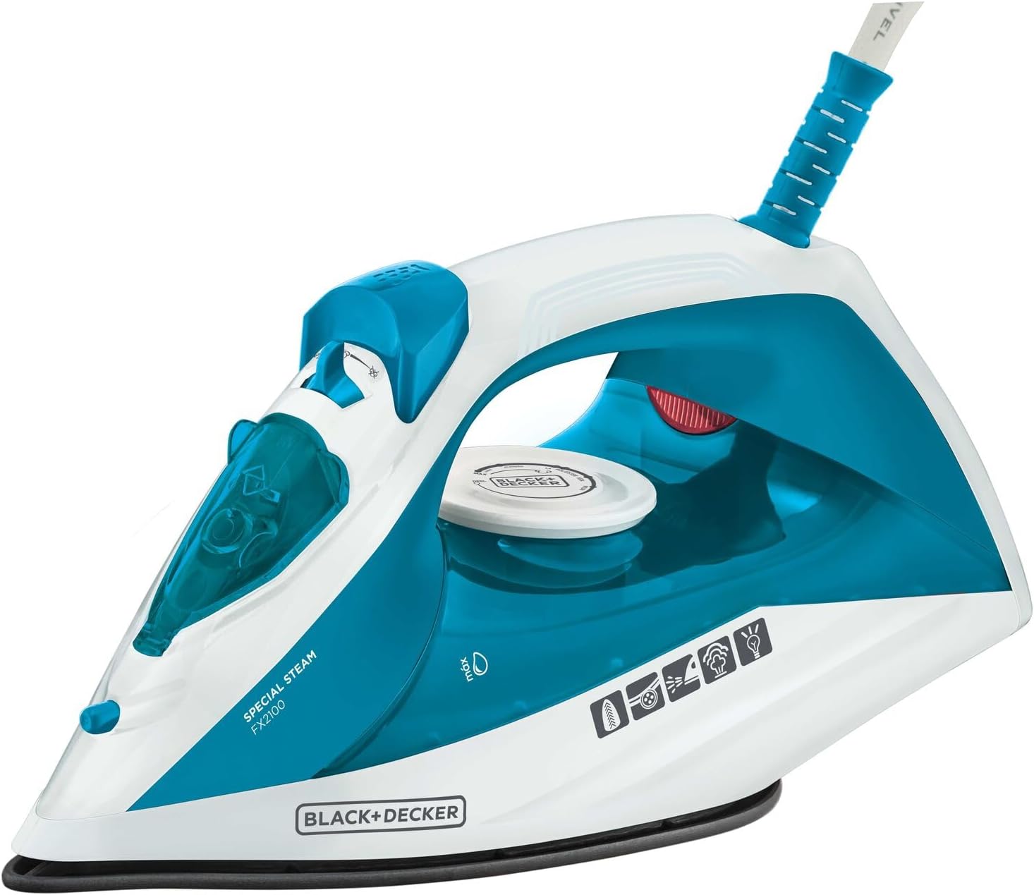 Black Decker Ferro de Passar Roupa, com Vaporizador, Base Antiaderente, Azul e Branco, Modelo FX2100, 110V