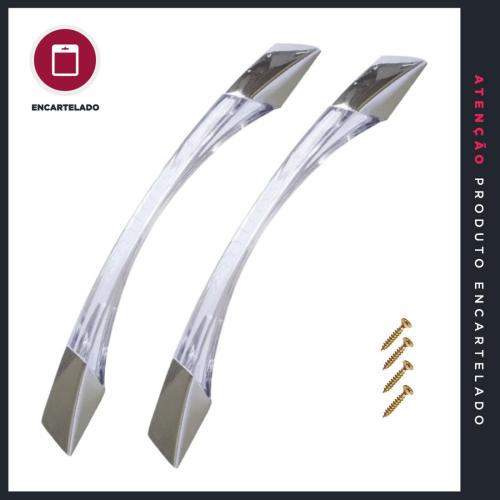 PUXADOR BARILOCHE 160MM CRISTAL/CROMADO ACRÍLICO ABS KIT COM 2 REF: 7342M