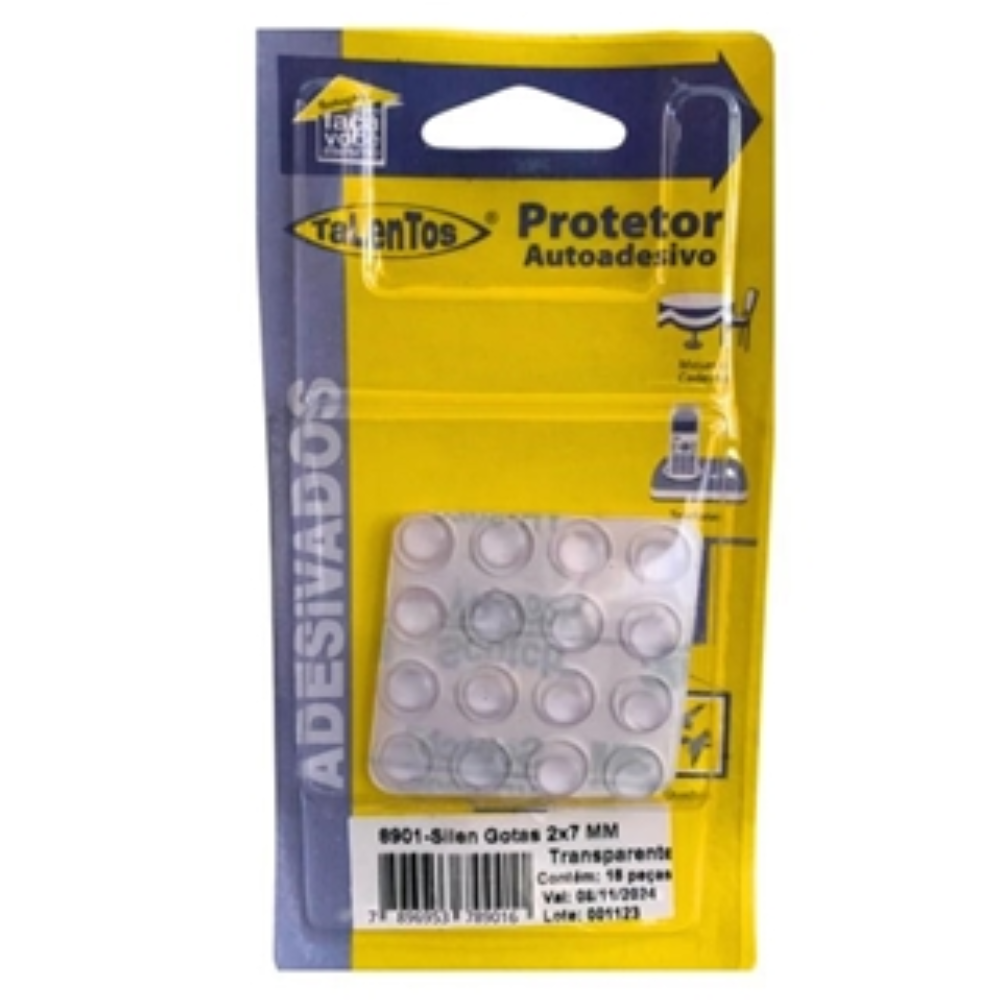 O Protetor para Móveis SILEN GOTAS 2X7 TRASNPARENTE 8901 TALENTOS 799114 é a solução ideal para quem busca evitar riscos, marcas e ruídos indesejados. Com um design de gotas circulares e cor transparente, estes protetores autoadesivos se integram discretamente a qualquer ambiente, oferecendo uma barreira protetora para uma vasta gama de aplicações. Fabricados com material resistente, como silicone ou PVC de alta qualidade, os SILEN GOTAS são perfeitos para serem aplicados em pés de cadeiras, mesas, eletrodomésticos, vasos, objetos de decoração e até mesmo para proteger paredes contra impactos de portas. Sua funcionalidade anti-risco e amortecedora prolonga a vida útil dos seus bens e mantém a estética do seu lar ou escritório impecável.