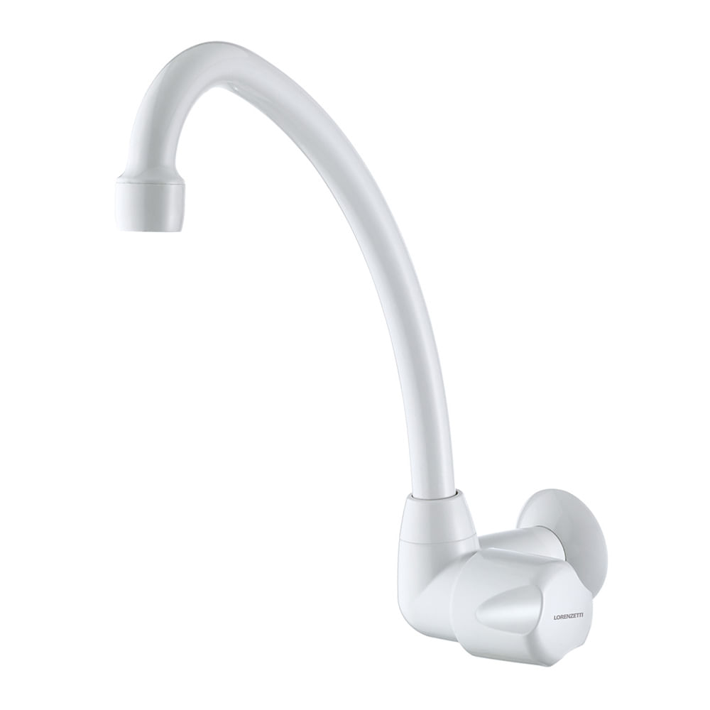 Ideal para cozinhas residenciais e áreas de serviço, esta torneira branca de parede é a escolha perfeita para quem busca um item que une beleza e funcionalidade.