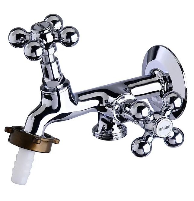 Desenvolvida para oferecer funcionalidade dupla, a Torneira Máquina SARAN 1153 C35 é uma solução robusta para ambientes que exigem múltiplas saídas de água, como lavanderias e jardins. Fabricada em ABS de alta qualidade, este modelo garante durabilidade e resistência à corrosão, sendo ideal para uso contínuo. Seu design clássico de parede, com acabamento prateado brilhante e superfícies reflexivas, adiciona um toque de elegância discreta. Equipada com duas saídas de água independentes, controladas por manípulos em formato de cruz, permite o uso simultâneo de diferentes acessórios, como máquinas de lavar ou mangueiras para jardim, graças ao seu adaptador rosqueado para mangueira.