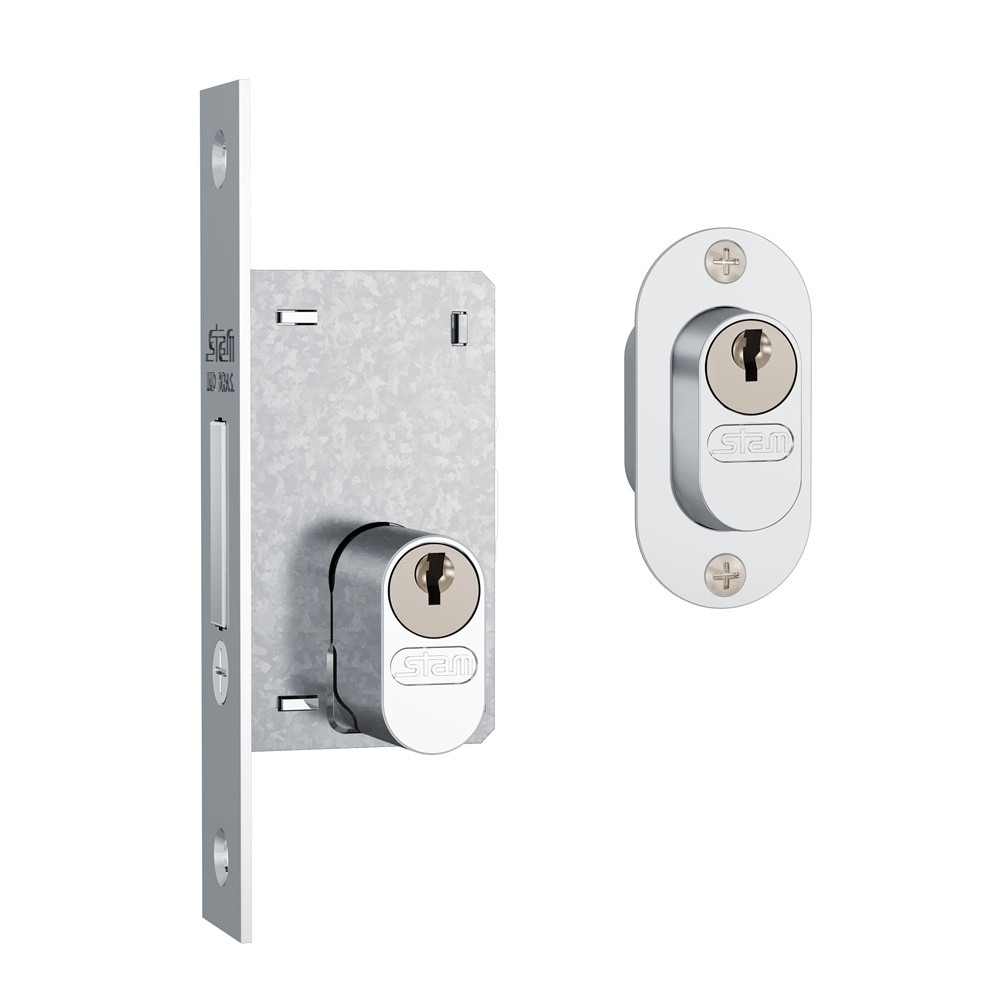 A funcionalidade auxiliar permite que esta trava complemente a linha 601/602 da Stam ou opere de forma independente, oferecendo flexibilidade.
