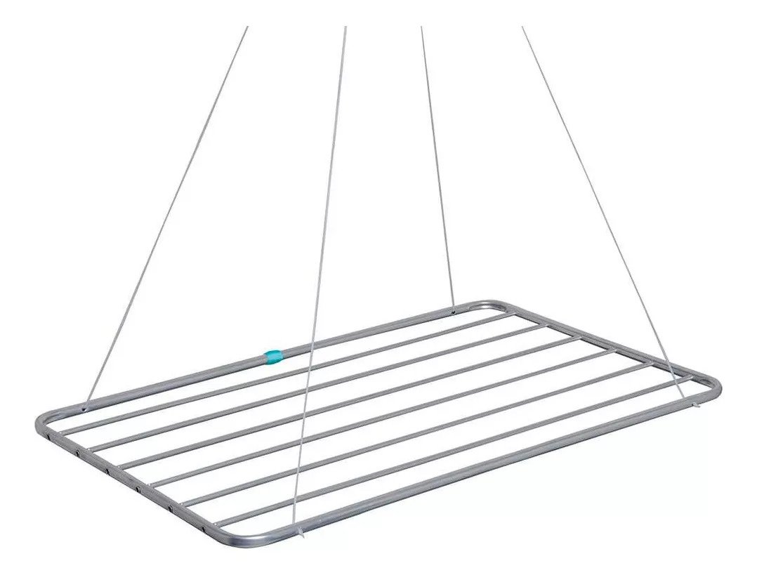 O Varal de Teto Alumínio é ideal para espaços reduzidos para secagem de roupas. Acompanha um kit para fixação no teto e corda ajustável em altura conforme a necessidade. Com estrutura em tubo de alumínio, assegura durabilidade e componentes em polipropileno. Comprimento de 90cm, capacidade para 6,95m ou 12Kg de roupas úmidas distribuídas de maneira uniforme. Resistente, não sujeito à corrosão, recomendado para áreas litorâneas. Leve e duradouro, com qualidade nos acabamentos.